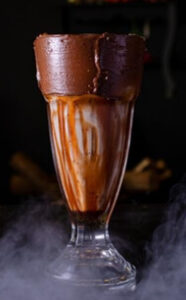“Bebida doce em base de caramelo, baunilha e sorvete.”